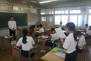 2年生の総合学習の時間に、真岡市青年会議所の方をお招きし、お仕事出前授業を行っていただきました。青年会議所の紹介や講師の方のお仕事などについてお話しいただいたり、仕事の大切さや大変さなどご講話いただいたりしました。生徒の皆さんの進路選択の参考になりました。大変ありがとうございました。