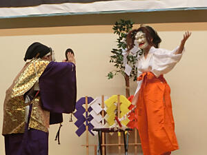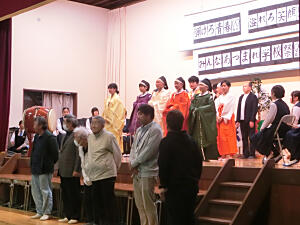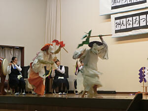 永代太々神楽の発表です。今年は、しばらく行われなかった「天弧の舞」も行われ、紅白のお餅もまかれました。
