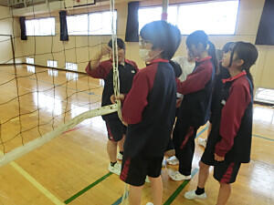 6校時に1年生のレクリエーションで、バレーボールとドッチボールを行いました。はじめに、しっかり準備運動をしてバレーボールを行いました。ネットの片付けも手際よく行い、その後はドッチボールです。最後は、みんなで記念撮影を行いました。