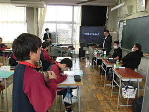 2年生の総合的な学習の時間に、建設関係、農業関係、飲食関係の3名の方を講師にお招きし、地域の方からのお仕事出前講座を行いました。仕事の内容ややりがい、仕事の大変なことなど紹介いただきました。その後は、生徒の質問にパネルディスカッション形式で答えていただき、いろいろなお話を聞くことができました。お忙しいところありがとうございました