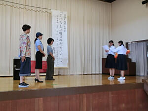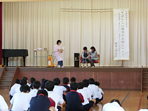 「生徒たちはあいさつがよくでき、授業での話し合い活動もうまくできており、いきいきと活動していますね」とお褒めの言葉をいただきました。これからも、楽しい学校づくりに努めて参ります。