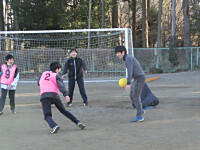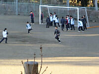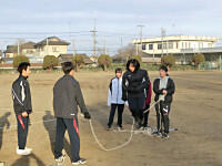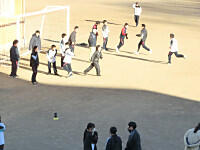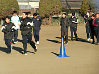 今日の冬期体力づくりは、5分間ランニングとダッシュを行いました。5分間自分のペースで走り、そのあとは、4人チームになって、サッカーゴールの間をリレー形式でダッシュしました。