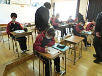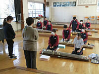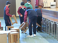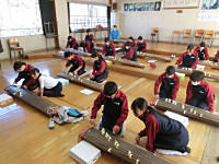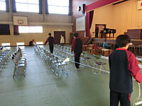 明日の立志式に向けて、1,3年生が会場準備をしています。4校時に3年生が、現在は、1年生が準備をしています。