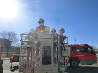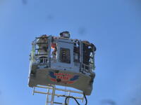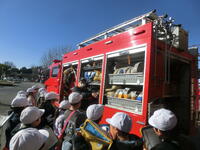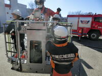 高く伸びたはしご車の上から見る景色に、子どもたちは恐々しながらも大興奮でした。