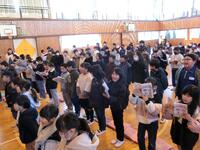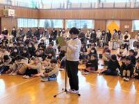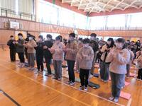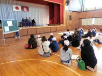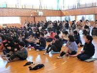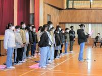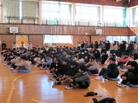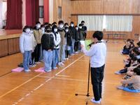 3月5日、業間の時間に体育館で今年度最後の朝会を行いました。