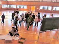9日の3校時は体育館で車いす体験、4校時は校舎内で視覚障がい体験をしました。