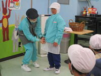 真岡第二給食センターから栄養教諭の神先生と3名の調理員の方々に来校いただきました。