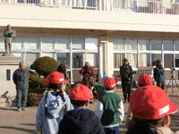 昼休みのお見送りの際には、子どもたちが集まってきて先生を囲んで写真を撮りました。
