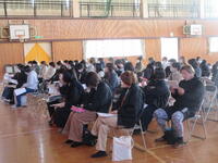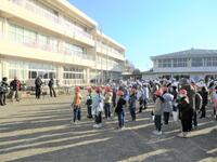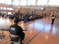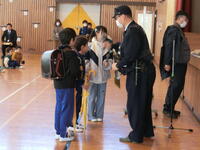 2月28日、朝の時間帯に体育館で交通指導員さん・駐在さんに感謝する会を実施しました。