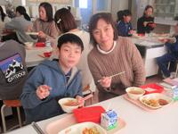 その後は急いで家庭科室に移動し、親子で仲良く一緒に給食を食べました。
