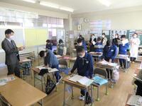 式の後、児童指導主任が春休み中の生活指導を行い、児童は教室に戻りました。