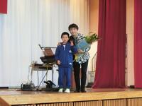 校長先生の話、児童生徒代表のお礼の言葉、記念品贈呈(花束・お手紙等)の後、