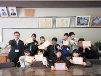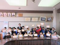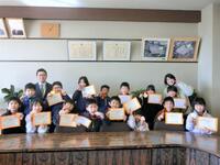 少し緊張しながらも誇らしい表情で校長室に入ってきた子どもたち。
