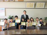 予行練習の後に表彰を行いました。書道や美術、理科研究、作文、健康優良児などのほか、