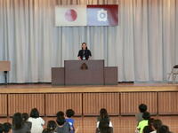 校長講話では、MLB大谷翔平選手とNBA河村勇輝選手を話題にして、