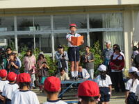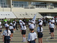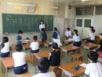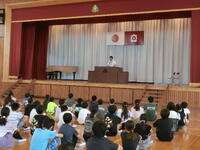 各委員会からの連絡、先生からの「今月の生活のめあて」のお話の後、