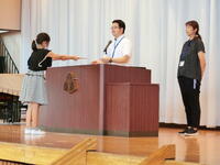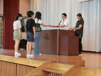 4月17日の朝会で、運営委員と1学期学級委員の任命式を行いました。