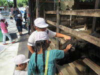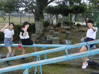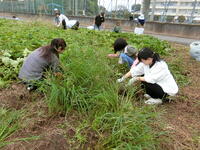 校庭の南の学校農園で、各学年で農園活動を行っています。