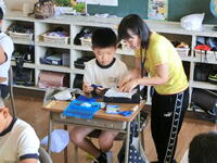 中学生のお兄さん・お姉さんに分別の仕方などを優しくを教わりながら、