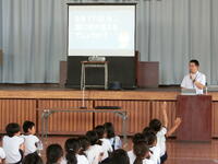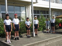 5月1日、全学年対象の交通安全教室を実施しました。市交通教育指導員や駐在さん、