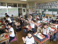 体験内容は、授業、給食・清掃指導の補助、業間や昼休みの児童の見守り等です。