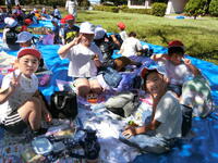 お弁当を食べてから広場で遊び、帰校後は拾ってきた葉っぱで個性豊かにお面づくりをしました。