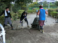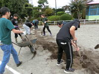 テントの確認、花壇の整備、側溝さらい、農園の除草を行いましたが、