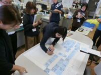 防災頭巾を被るなど、より実践的な方法で真剣に訓練に取り組みました。