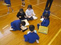 学校に戻ってから、体育館で「鳥あわせ」をして確認しました。