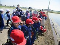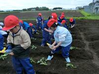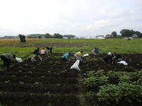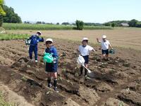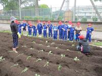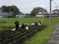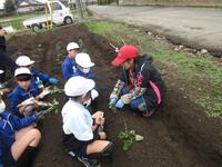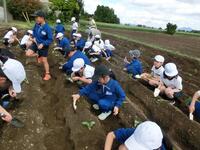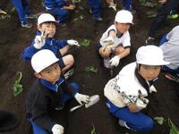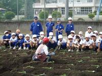 校庭の南の学校農園で、各学年で農園活動を行っています。