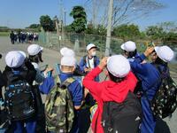 双眼鏡やフィールドスコープで川沿いや学校周辺の野鳥を観察しましたが、