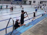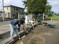 びしょ濡れになりながらも一生懸命に清掃をしてくれました。