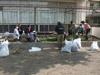テントの確認、花壇の整備、側溝さらい、農園の除草を行いましたが、