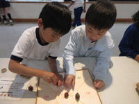 学校に戻ってから、体育館で「鳥あわせ」をして確認しました。