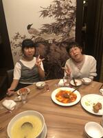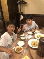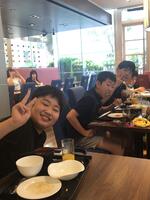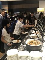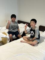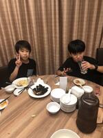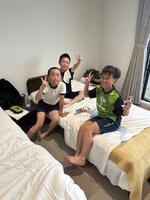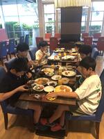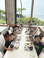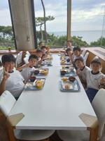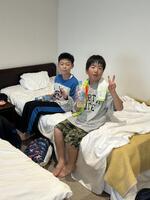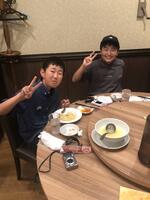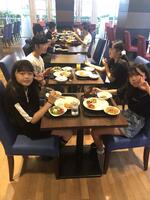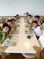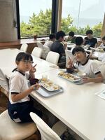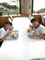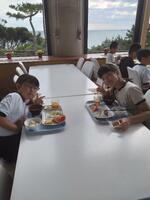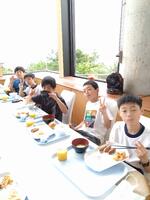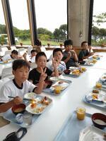 5年生は、夕飯をたくさん食べ、みんな元気に