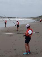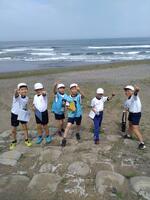 5年生、全員元気に午後の活動、海浜ビンゴ
