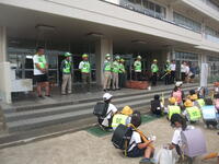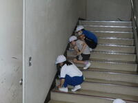 防災頭巾を被るなど、より実践的な方法で真剣に訓練に取り組みました。