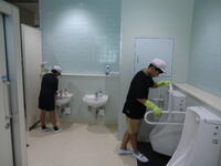 びしょ濡れになりながらも一生懸命に清掃をしてくれました。