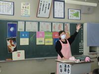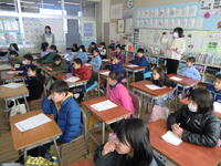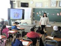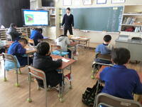 学校の沿革や子どもたちの様子を伝え、小学校の生活について説明しました。