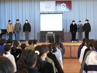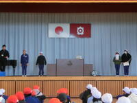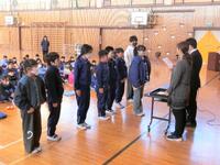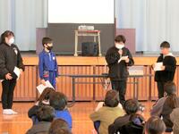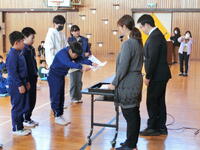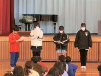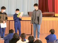 1月15日、業間の時間に体育館で朝会と3学期学級委員任命式を行いました。