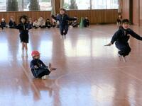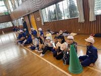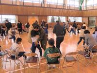 4校時に体育館で「じゃんけん列車」や「なんでもバスケット」を楽しみ、