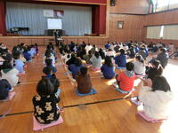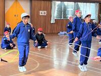2月3日、業間から3校時にかけて、体育館で児童集会(縄跳び大会)を行いました。