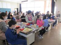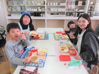 その後、引き続き家庭科室で親子一緒に仲良く給食を食べました。