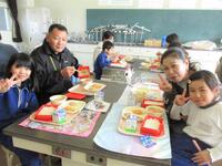 その後に理科室で親子一緒に仲良く給食を食べました。
