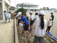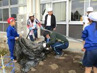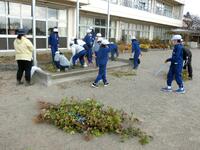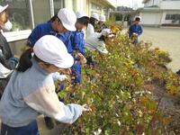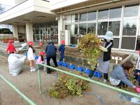 12月2日の2校時に、花壇に植えた和綿の後片付けを行いました。