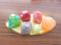 宝石石けんは、グリセリンソープを溶かして固め、色や香りを加えて宝石のようにカットしてつくります。