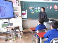 はじめに養護教諭から「おへその秘密」についての説明を行った後、