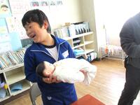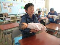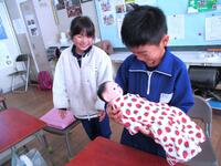 最後にみんなで、赤ちゃんを模した人形による「赤ちゃん抱っこ体験」をして終了。
