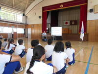 朝会では、来週から産休に入る養護教諭からあいさつをいただきました。