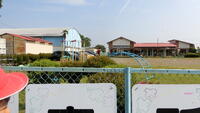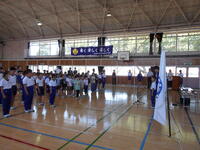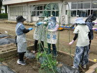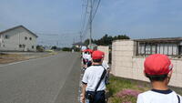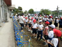 4年生が実際に火を消す体験をしました。消防署員の方の指導のもと、落ち着いて行動できました。